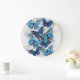 Relógio Grande Composição de Borboletas Brancas e Azuis