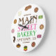 O design de relógio apresenta um marcador original ilustrativo de uma variedade de biscoitos deliciosos cozidos frescos, incluindo gingersnaps, macarões, arco-íris italiano, chip de chocolate, biscoitos de açúcar e muito mais. Apenas personalize com suas informações de padaria. Estas ilustrações de cookies estão disponíveis em outros produtos. Também estão disponíveis ilustrações coordenadas de alimentos. Não vê o que está procurando? Precisa de ajuda para a personalização? Clique em "contate este designer" para criar algo apenas para você!