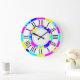 O design é moderno, vibrante e elegante, com algarismos romanos exibidos em quebra-cabeça coloridos em tons de amarelo vivo, rosa quente, azul profundo e azul esverdeado. Os algarismos romanos funcionam como os marcadores de hora do relógio, complementados por tags minúsculas. Para solicitações ou perguntas especiais, entre em contato com o artista em wafadahdalcreates@gmail.com. © Wafa Y. Dahdal - Todos os direitos reservados. WD Art