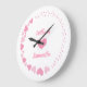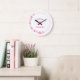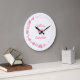 Celebre o amor a cada segundo com este elegante relógio de parede personalizado com um design romântico de corações rosa em um fundo preto. O centro apresenta dois nomes personalizados acima e abaixo de um motivo de coração, tornando-o perfeito para casais, aniversários, casamentos ou Dia dos Namorados. Um presente atencioso e uma adição elegante a qualquer quarto, sala ou escritório.