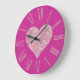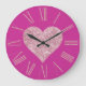 Relógio Grande Coração Rosa-Brilhante em Fuchsia