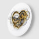 Cardíaco mecânico, volumétrico e steampunk com manômetros de pressão, de aço e de ouro sobre fundo branco. Estilo Steampunk.