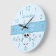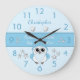 Um relógio de coruja fofo para o berçário ou sala de jogos do seu bebê, borrifado com algumas estrelas e corações prateados e as palavras 'Dream Big, Little One'. Apenas adicione o nome dele.