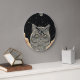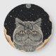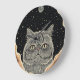 Peeking through an asteroid window, a grumpy yet lovable cosmic cat gazes into the vastness of space. This fun, retro-style illustration combines a love for felines with the adventure of space travel, perfect for any cat lover with their head in the stars.