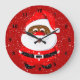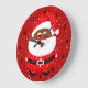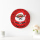 Um relógio de parede personalizado de Natal afro-americano para Papai Noel, que apresenta um bonito e branco Papai Noel e flocos de neve em fundo vermelho.
