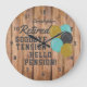 Um relógio rústico da aposentadoria personalizado com uma citação divertida e humorística "Tchau tensão Alô Pensão! "Compreende uma cinza/cinza azul decorada em madeira castanha e balões dourados. Faz um excelente deixar presente para aqueles que estão se aposentando. Excelente para o funcionarios de escritório masculino, funcionário, amigo ou qualquer empresa ou organização corporativa apresentar-se ao funcionarios que está saindo devido à aposentadoria. Personalize com um nome e data e, em seguida, personalize alterando a cotação, se necessário. - o nome e a data podem ser excluídos, se necessário, ou substituídos pelo nome da sua empresa.