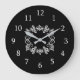 Um relógio na moda preto e branco da cozinha. Um padrão decorativo no centro adiciona um toque de designer ao relógio da cozinha.