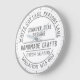 Craft Shop Wall Clock. Shop clock with business name and other details. Grey and white design.