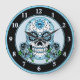 Crânio do açúcar de Diâmetro de los Muertos (dia do morto) com rosas e corações nas matiz do azul.
