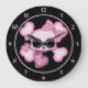Crânio roxo e bósforos com arco pontilhado de polca e corações.