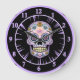 Crânio do açúcar de Roxo Diâmetro de los Muertos com flores, o diamante e coração coloridos.