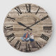 Turn your favorite memory into a timeless piece of art. This custom wall clock features a realistic weathered wood texture and classic black Roman numerals, adding a warm, rustic farmhouse charm to any room.