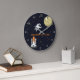 Relógio Grande Crianças Astronautas Lua Fogueira do Sistema Solar