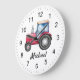 Relógio Grande Crianças de Fazenda de Aquarela de Trator Vermelho