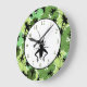 Relógio Grande Críquete Floral Padrão Verde e Preto