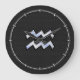 Um cromo prateado como o símbolo Aquarius zodiac num fundo impressão de design de textura automóvel. Um design moderno urbano para uma ideia personalizada de presente de aniversário de excelente.
