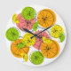 Um meio século inspirou um design com um toque retrorreflector com fatias estilizadas de frutas de citros - laranja, limão, limão e toranja, sobre fundo branco. Um design personalizável para você personalizar com seu próprio texto, imagens e ideias. Uma imagem de arte digital original criada por Jess Perry no QuirkyChic Retro.