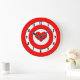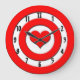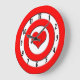Um alvo vermelho e branco com um coração vermelho no lugar do touro. Os números negros se sentam no círculo branco mais próximo à borda deste relógio de parede divertida. Cupido tem certeza de que te coloca bem no coração com este design simples, mas fofo.
