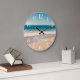 Customize the white color of the elegant modern calligraphy style of the numbers group on this decorative wall clock to match your own summertime vacation photo.