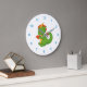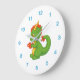 Adorable green baby dragon with red spikes and golden horns is holding a red teacup.