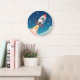 Wall Clock, Moldura de madeira branca redonda de 25,4 cm