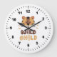 Design bonito com um adorável tigre sorridente com olhos fechados com o texto "Criança Selvagem" em caracteres decorativos. Perfeito para decoração infantil, quarto infantil e presente para amantes de tigre