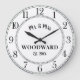 Um relógio de parede de casamento rústico moderno branco com data de fundação. Simples e minimalista.