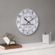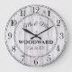 Um relógio de parede de casamento rústico moderno com madeira de celeiro pintada de branco com data estabelecida e monograma.