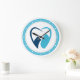 Um relógio profissional de parede dentária com uma imagem de dente para o consultório de um dentista, para o consultório dentário ou para o material dentário. Personalizado com suas informações sobre prática dentária.