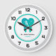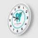 Um relógio profissional de parede dentária com uma imagem de dente para o consultório de um dentista, para o consultório dentário ou para o material dentário. Personalizado com suas informações sobre prática dentária.