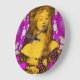 Elaboração digital de uma bela pintura pré-raphaelita de Cowper com fractais roxos cor-de-rosa. Uma loura romântica de cabelos longos com pérolas brancas, flores damascos, tecidos sofisticados de ouro damascos de um antigo fantasma medieval...