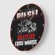 Este relógio ousado e humorístico captura perfeitamente a realidade crua da vida na estrada para muitos caminhoneiros. Apresentando um forte gráfico de caminhão e a divertida declaração "EU CORRO DIESEL CAFFEINE E CUSS WORDS", é um presente divertido e relacionável para qualquer herói de longo curso com uma personalidade forte.