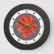 Um estilo botânico e doméstico, onde a foto de uma flor alaranjada da dália encontra o círculo branco da face do relógio com os pontos pretos para todas as horas mas 3, 6, 9 e 12. É adicionado o que aparece como um quadro colorido preto.