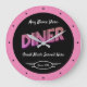 Qualquer diner de nome com gráfico retrorreflector cor-de-rosa sobre um fundo preto com uma borda rosa. Use apenas a opção personalizar esta modelo para alterar o texto. Script de tipografia de slogan com qualquer data. Apenas escolha a cor e o tamanho da mão.