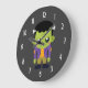 Um relógio com uma imagem divertida de Halloween apresentando um monstro Frankenstein verde.