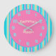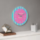 Um relógio colorido listrado com centro cor-de-rosa mais números correspondentes Este relógio infantil é perfeito para aprender a dizer o tempo. O recurso adicionado é o nome Gemma. Personalizar para alterar o nome da criança.