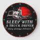 Este relógio de parede apresenta um slogan humorístico e um pouco sugestivo para aqueles ligados ao mundo dos caminhões. Contra um fundo preto com uma jante vermelha e sutis listras vermelhas, ele exibe o texto em negrito e angustiado "SLEEP WITH A TRUCK DRIVER (eles sempre entregam)" em branco. Também está presente um gráfico semircaminhão branco, fazer-o um pedaço lúdico e único de decoração.