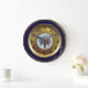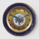 Dourado, azul de cobalto e placa de antiguidade floral. Este padrão de imagem apresenta uma elegante cena pintada à mão floral rodeada por um padrão de ouro intrincado, que é fechada num rico azul de cobalto contrastante com uma jante de ouro decorativo. Os números neste relógio são a mesma sombra de azul de cobalto. O "efeito" da placa é criado por sombreamento claro e escuro.