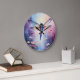 Relógio Grande Dragonfly com Flores Purple Watercolor
