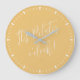 É Pilates O' Clock Fun Blush Ouro Yellow White Script Workout Time Wall Clock - cores totalmente personalizáveis, use a ferramenta design para fazer as mudanças que você quiser. presente divertido para qualquer amante de Pilates, fã de Pilates, instrutor de Pilates ou como decorador de estúdio de Pilates.