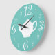 Relógio retrô bonito com um pote de chá no centro e cor de fundo personalizável.