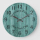 Este relógio maravilhoso apresenta um fundo de efeito de madeira e ficaria bem em qualquer parede. Números claros e marcas minúsculas a preto fazem desta peça uma peça central em qualquer casa. O texto pode ser alterado de acordo com suas próprias necessidades. Design por Designs KPW