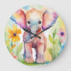 Relógio Grande Elefante de Vida Selvagem de Aquarela