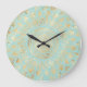Relógio Grande Elegante Dourado Teal Mandala Floral