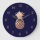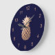 Relógio Grande Elegante Faux Rosa Dourado Abacaxi em Marinho Azul