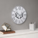 Fazenda elegante estilo rústico falso, madeira branca de cinza e cinzas com números de cinza ao longo do relógio. É uma lavanderia branca, cinzas de madeira têm um toque do estilo antigo da fazenda em qualquer sala. O charme do país encontra elegância rústica neste encantador relógio de parede.