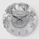 Elegante relógio de aniversário de casamento com diamantes e flores prateados.