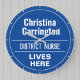 Estilo Comemorativo Divertido Presente em Parede na forma de Relógio de Parede para uma Enfermeira Distrital. Placa azul e branca. Edite a design para alterar o texto de acordo com o destinatário do presente.