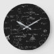 Relógio preto e branco elegante com um fundo de fórmula matemática. Excelente para matemáticos, professores e decoração doméstica. Ilustrada e projetada por Patricia Alvarez.