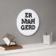 Dorky and fun typography text design clock featuring a word from the popular meme of Ermahgerd. Ermahgerd is a very obnoxious and lisped way to say "Oh my God!" Customize with your own text and background color. Use an ermahgerd translator such as this one [http://ermahgerd.jmillerdesign.com/#!/translate] to make your personalized text even more silly!